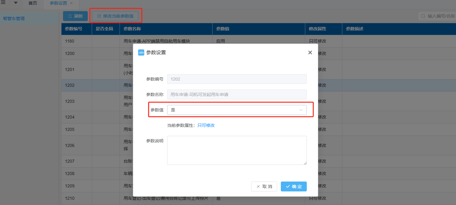 选中当前参数点击上方“修改当前参数值”,在“参数值”中选择所需的参数点击“确定”,即设置成功。