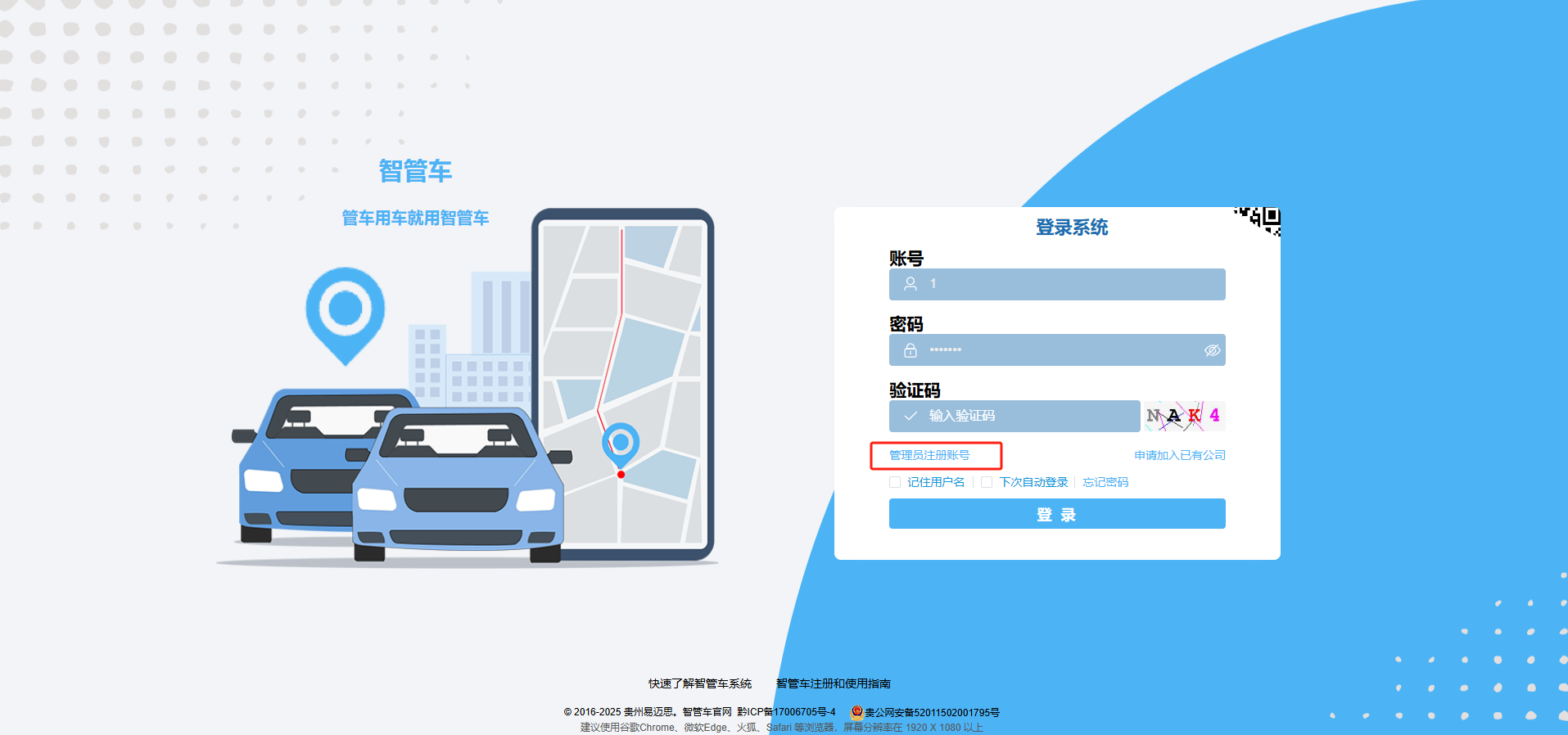 1、浏览器输入网址:https://zgc.zhiguanche.net/,点击登录框底下的“注册管理员帐号”;