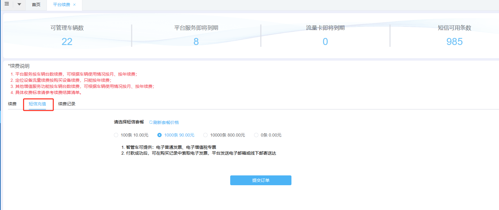 充值短信服务可用于在流程节点提醒对应接收人,以免错过消息,影响用车,系统提供了